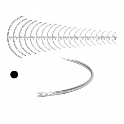 Indicazioni: Ago sutura semi curvo, 3/8 di cerchio, con sezione triangolare a cruna aperta. Gli aghi da 3/8 di cerchio, detti anche "curvi", sono gli aghi più comunemente usati. La curvatura li rende facili da manipolare in ferite grandi o superficiali. Gli aghi sono disponibili in confezioni da 12, nelle seguenti varianti Formati: 3/8 PUNTA TRIANG. C/APERTA: 1 - 80 mm C/APERTA 2 - 73 mm C/APERTA 3 - 68 mm C/APERTA 4 - 64 mm C/APERTA 5 - 59 mm C/APERTA 6 - 55 mm C/APERTA 7 - 52 mm C/APERTA 8 - 50 mm C/APERTA 9 - 46 mm C/APERTA 10 - 43 mm C/APERTA 11 - 41 mm C/APERTA 12 - 38 mm C/APERTA 13 - 35 mm C/APERTA 14 - 33 mm C/APERTA 15 - 32 mm C/APERTA 16 - 31 mm C/APERTA 17 - 29 mm C/APERTA 18 - 27 mm C/APERTA 19 - 25 mm C/APERTA 20 - 23 mm C/APERTA 3/8 PUNTA TONDA C/APERTA: 1 - 80 mm C/APERTA 8 - 50 mm C/APERTA 9 - 46 mm C/APERTA 10 - 43 mm C/APERTA 11 - 41 mm C/APERTA 12 - 38 mm C/APERTA 13 - 35 mm C/APERTA 16 - 31 mm C/APERTA 3/8 PUNTA TRIANG. C/CHIUSA 1 - 80 mm C/CHIUSA 5 - 59 mm C/CHIUSA
