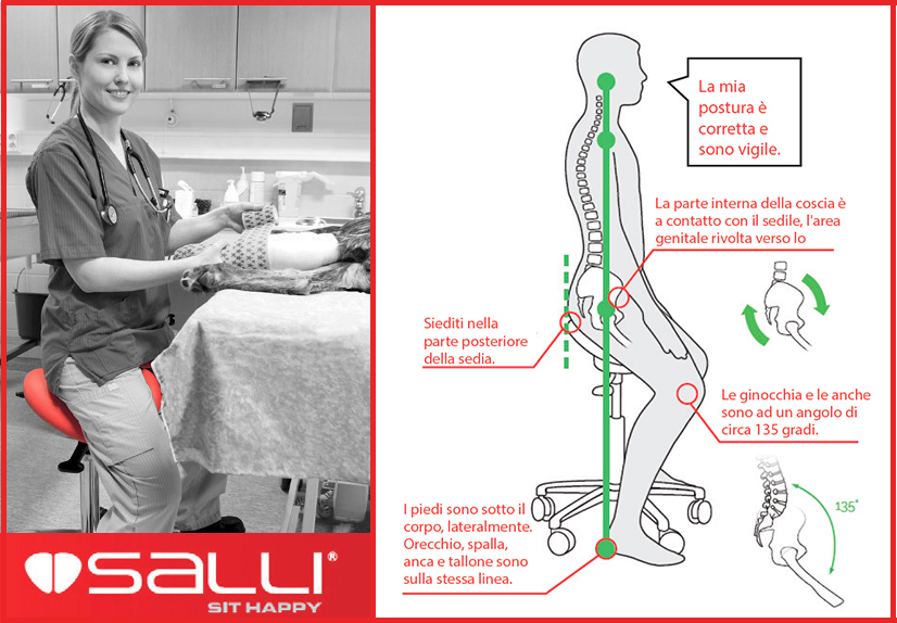 La seduta di Salli divisa in due parti porta il bacino verso l'alto per far assumere alla colonna verticale la curvatura fisiologica;