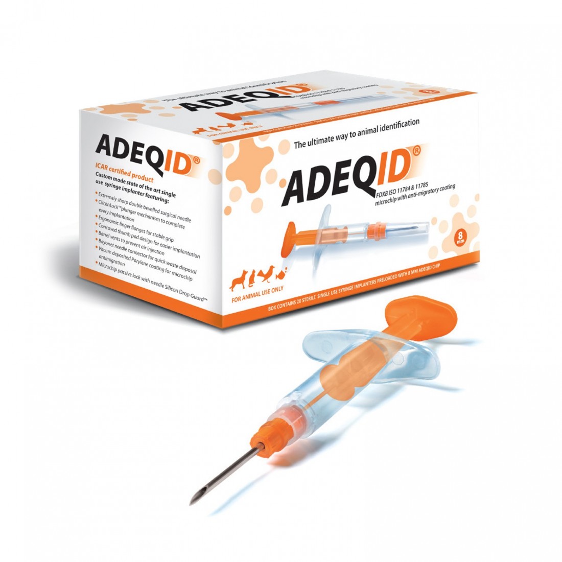 Microchip Adeqid - Iniettori Monouso ADEQID Caratteristiche: - Ago chirurgico estremamente affilato con doppia smussatura - Meccanismo a stantuffo ClickLockTM per completare ogni tipologia di impianto - Impugnatura iniettore ergonomica per una presa stabile - Pistoncino concavo per migliore manualità - Sfogo di uscita per prevenire l’iniezione di aria - Attacco ago a baionetta per una rimozione rapida - Rivestimento transponder in Parylene per evitare la migrazione del microchip - Sistema Silicon Drop GuardTM per evitare la fuoriuscita del microchip prima dell’impianto - I microchip FDXB operano ad una frequenza di 134.2 kHz. Formato: confezione 20 pezzi.