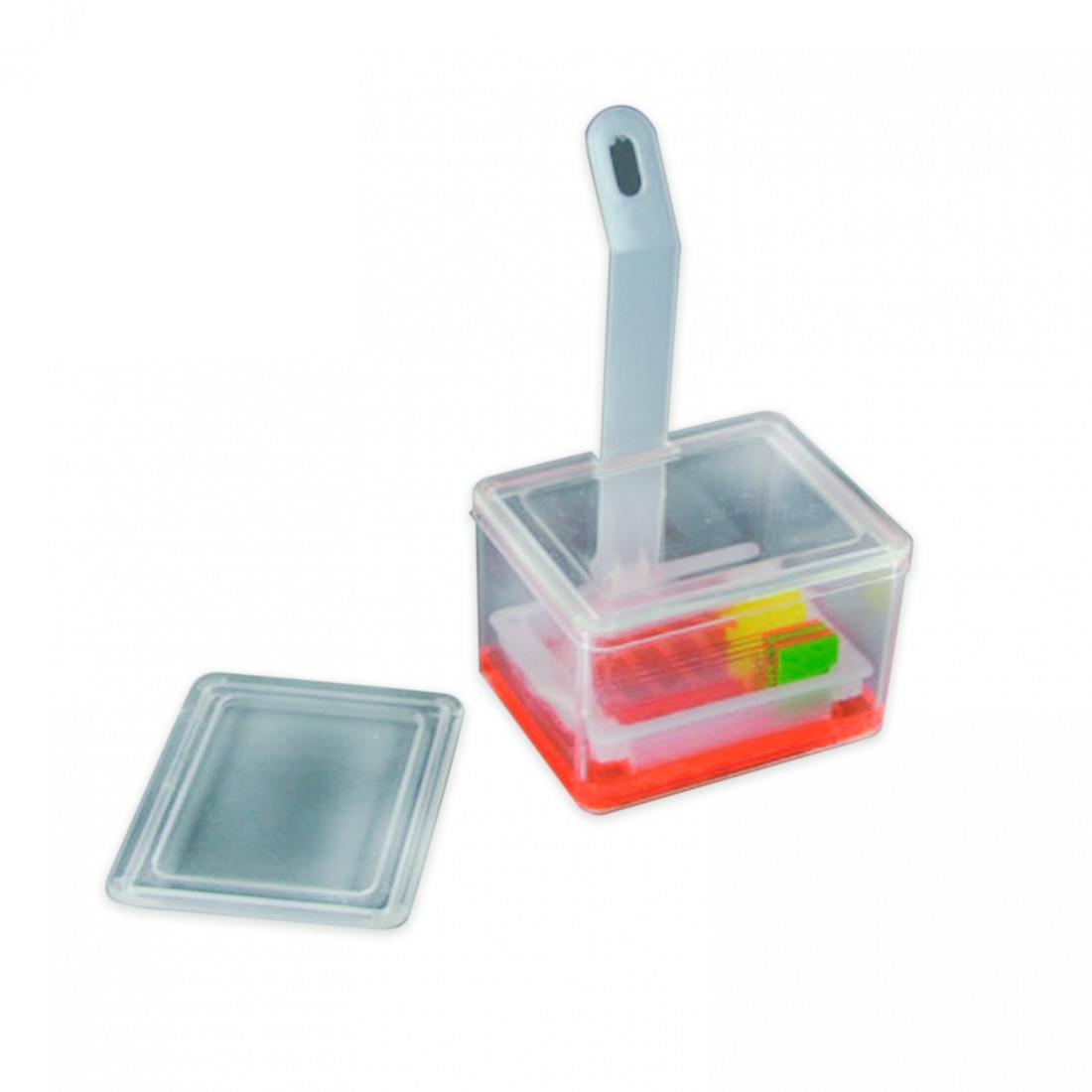 In TPX®, corredata di 2 coperchi, uno per chiusura totale onde evitare l’evaporazione del liquido quando la vaschetta non viene usata,