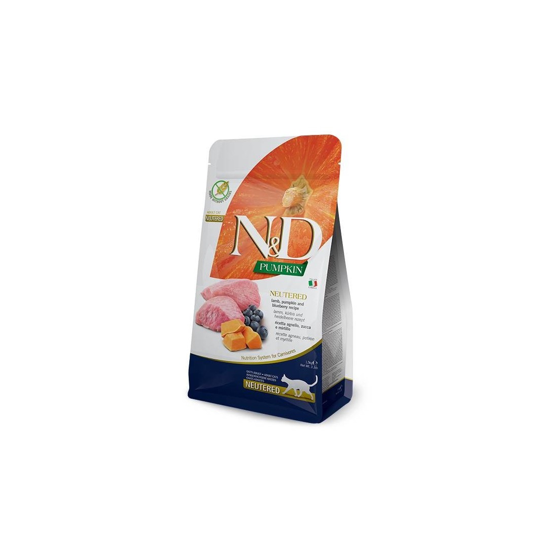 N&D Gatto Zucca Agnello e Mirtillo Neutered 5 kg è un alimento secco completo formulato per gatti sterilizzati, con agnello come fonte proteica principale e mirtillo come ingrediente naturale ricco di nutrienti. La presenza della zucca contribuisce a una buona funzionalità digestiva, mentre il profilo nutrizionale bilanciato è studiato per favorire il mantenimento della condizione corporea nei soggetti sterilizzati. La crocchetta offre elevata appetibilità e tollerabilità quotidiana. Il formato da 5 kg rappresenta una soluzione pratica per una scorta duratura mantenendo la freschezza del prodotto.