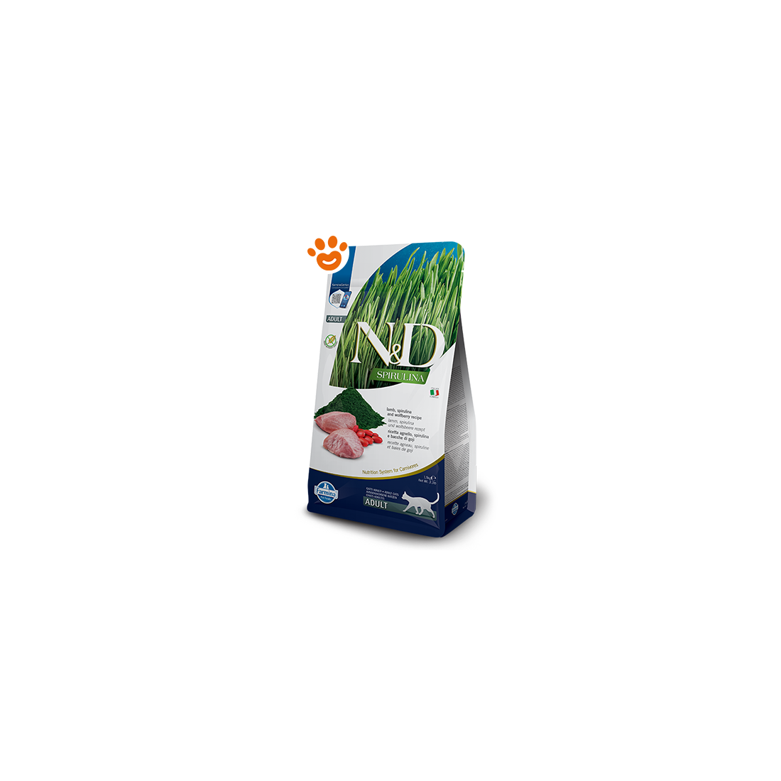 N&D Gatto Spirulina Agnello 1,5 kg è un alimento secco completo formulato con agnello come fonte proteica principale e spirulina come ingrediente funzionale. La ricetta offre un profilo nutrizionale bilanciato e facilmente digeribile, studiato per supportare la vitalità quotidiana e il benessere generale del gatto adulto. La combinazione di ingredienti naturali contribuisce al mantenimento della condizione fisica, della qualità del mantello e dell’equilibrio metabolico, garantendo una nutrizione completa e di alta qualità.