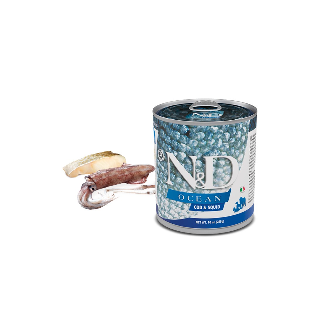 N&D Cane Ocean Merluzzo & Calamaro è ideale per tutti i cani adulti e contiene ingredienti attentamente selezionati. Ogni scatoletta di umido viene cotta lentamente al vapore. Gli ingredienti vengono inseriti a crudo nelle scatolette BPA free e poi cotti una sola volta.