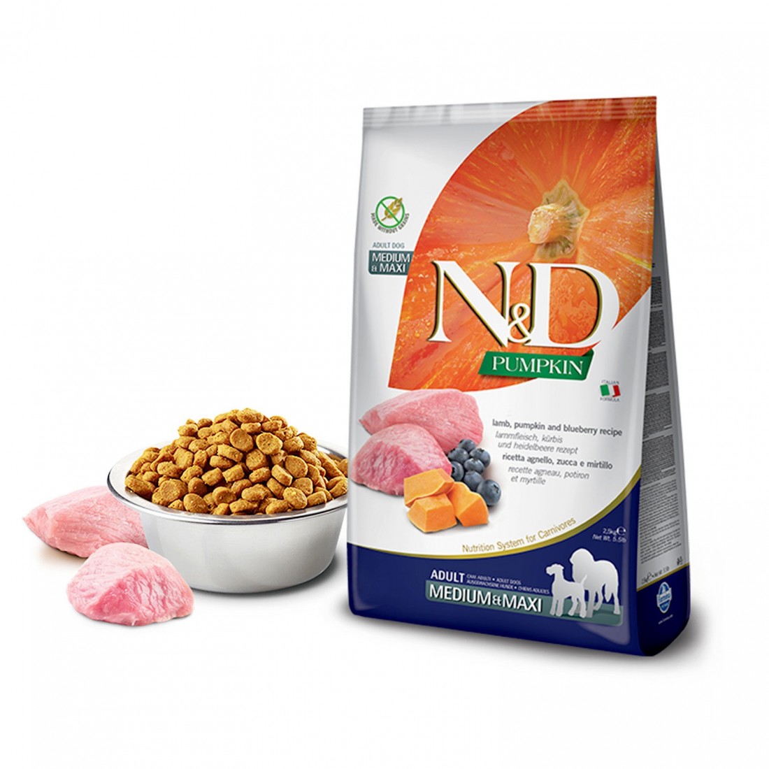 N&D Cane Zucca Agnello Mirtillo Med/Max 12 kg è un alimento completo formulato per cani di taglia media e grande. La ricetta combina agnello come fonte proteica altamente digeribile, zucca come carboidrato selezionato e mirtillo come ingrediente funzionale, offrendo un profilo nutrizionale equilibrato pensato per sostenere vitalità e benessere quotidiano. L’elevata appetibilità favorisce un’assunzione regolare, risultando adatto anche ai soggetti più esigenti.