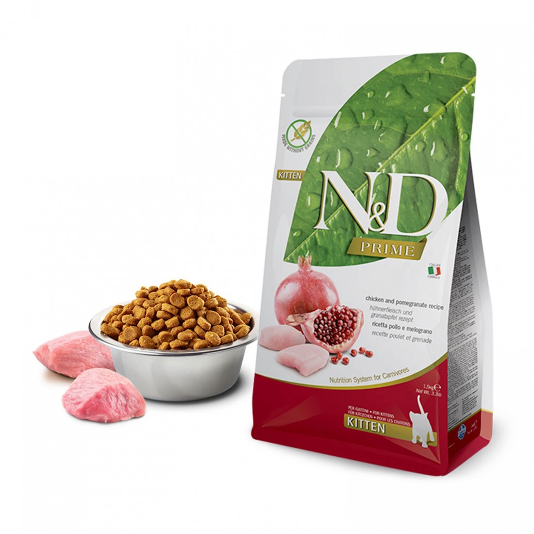 N&D Prime Kitten Pollo e Melograno è studiato per sostenere la crescita del gattino con una ricetta ricca di proteine animali, frutta e nutrienti fondamentali. La formulazione favorisce una digestione efficace e contribuisce allo sviluppo armonioso di muscoli, ossa e difese naturali. Il melograno apporta antiossidanti utili al benessere quotidiano, mentre la qualità degli ingredienti garantisce un’alimentazione completa e appetibile. Il formato da 300 g è ideale per prove, integrazione o per mantenere la massima freschezza del prodotto.