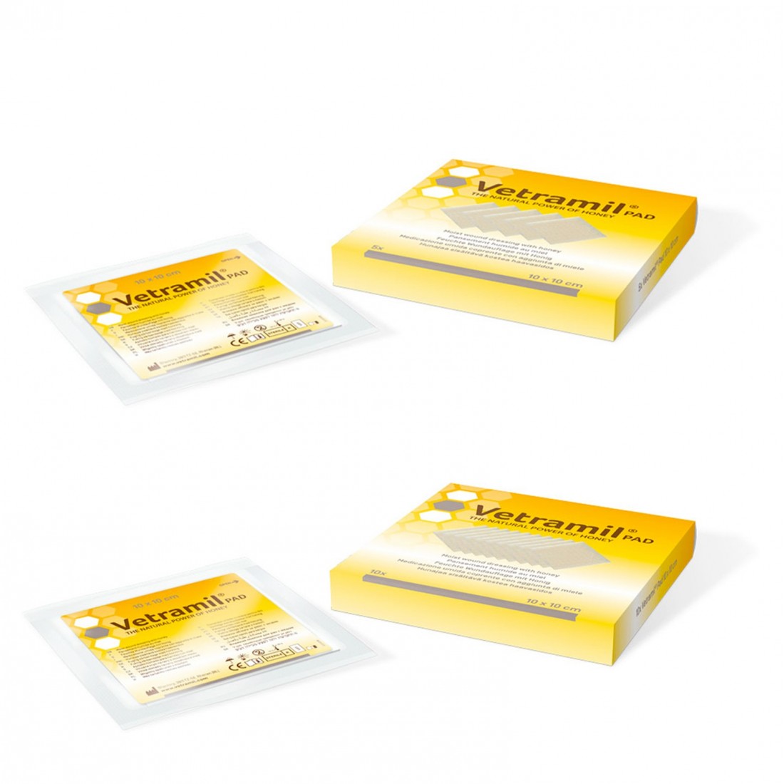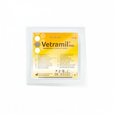 Vetramil Pad è un dispositivo dermatologico composto da garze impregnate con miele medicale, ideale per supportare la cicatrizzazione e la
