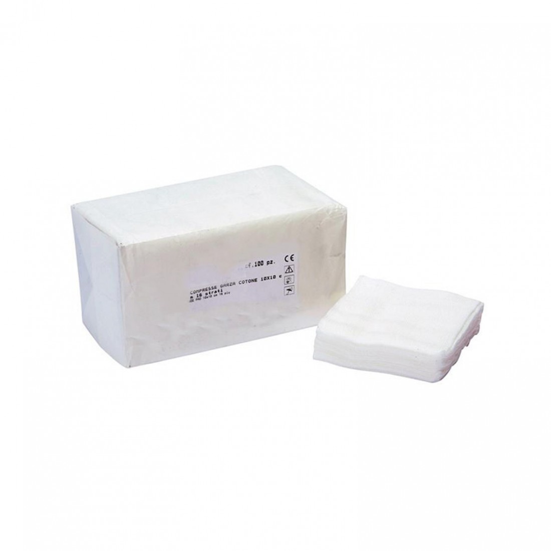 Compresse di garza idrofila in puro cotone tit.12/8, piegata e ribordata, senza filo di bario 16 strati