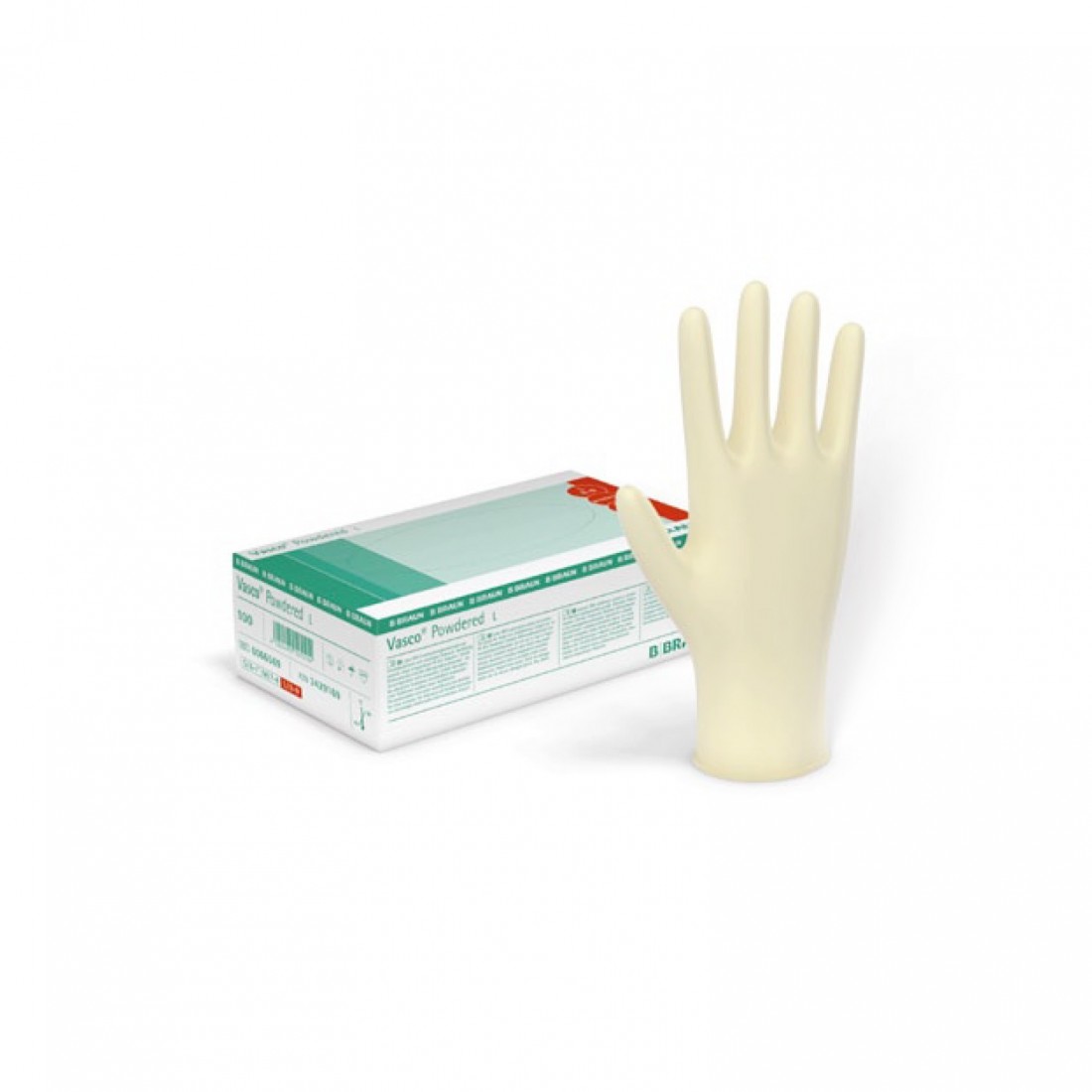 Guanti con polvere Vasco® - guanti da esplorazione con polvere secondo MDD 93/42 / CEE, EN 455 - guanti protettivi secondo DPI 89/686 / CEE, EN 420, EN 374 - spessore della parete sul palmo: min. 0,08 mm DESIGN DEL GUANTO Colore bianco naturale Forma dita dritte, vestibilità ambidestra Orlo arrotolato del polsino, polsino regolare Finitura superficiale micro ruvida Superficie interna del guanto in polvere Amido di mais in polvere in polvere MATERIALE DEI GUANTI Lattice di gomma naturale (NRL) Rischio di allergia al lattice contenente lattice di gomma naturale che può causare reazioni allergiche comprese reazioni anafilattiche ACCELERATORI Zn-ditiocarbammato Senza tiurame e mercaptobenzotiazoli MBT Dimensioni: larghezza del palmo S - 80 ± 10 mm M - 95 ± 10 mm L - 110 ± 10 mm Confezione Confezione dispenser 100 pz. - 200 x 110 x 60 mm (L x P x A)