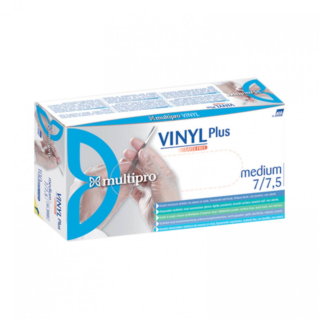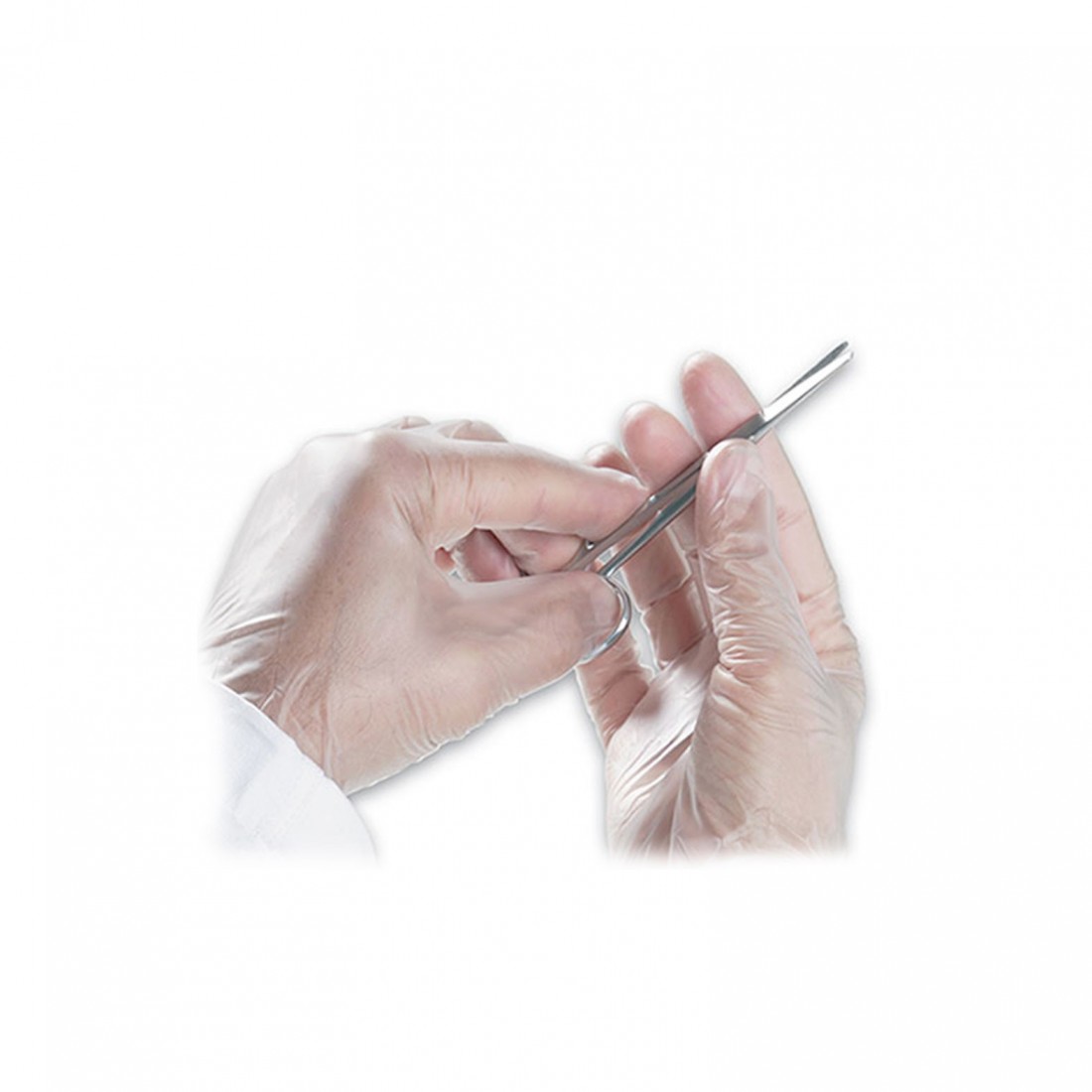 Guanto medicale in vinile, esente da lattice di gomma naturale, lubrificato con polvere, ad elevata bio- compatibilità, qualità controllata e certificata.