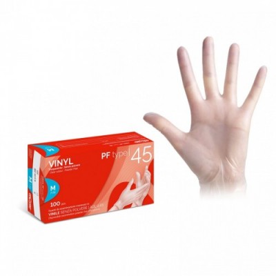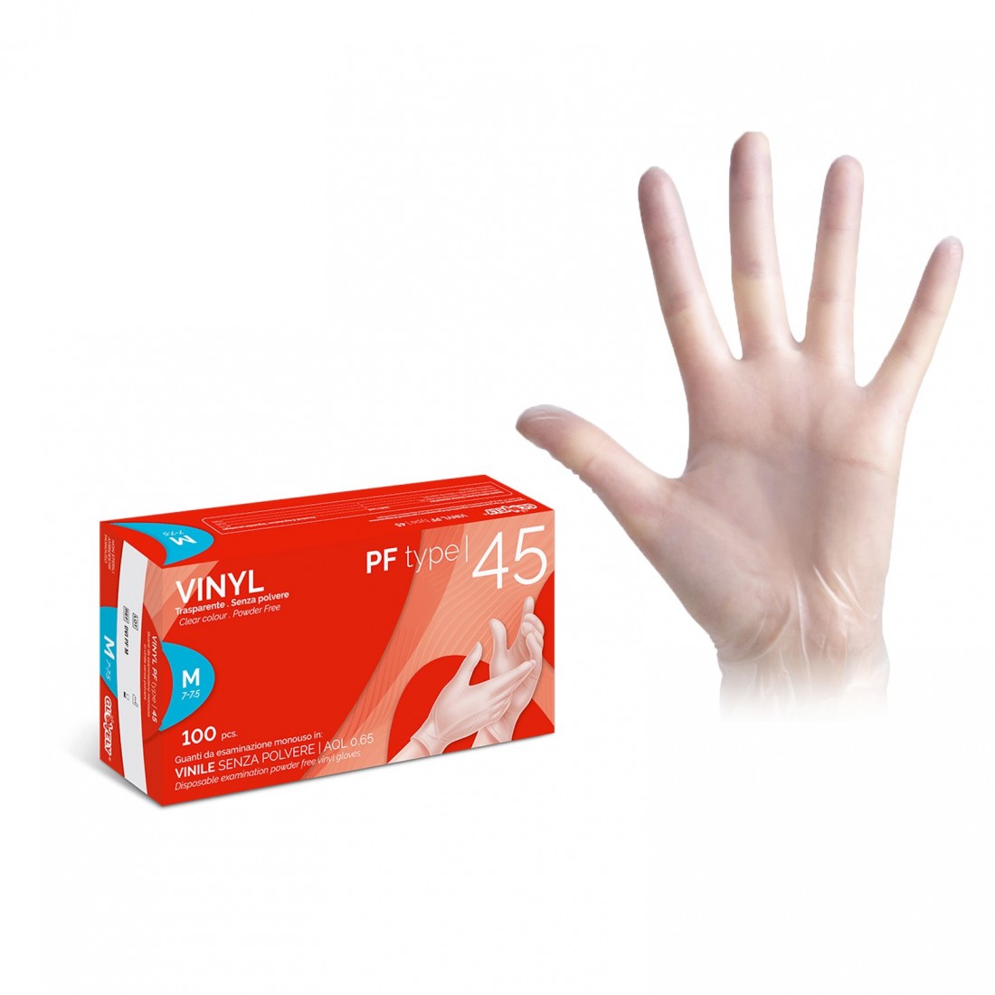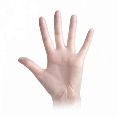 Guanto in vinile senza polvere lubrificante, colore bianco trasparente.