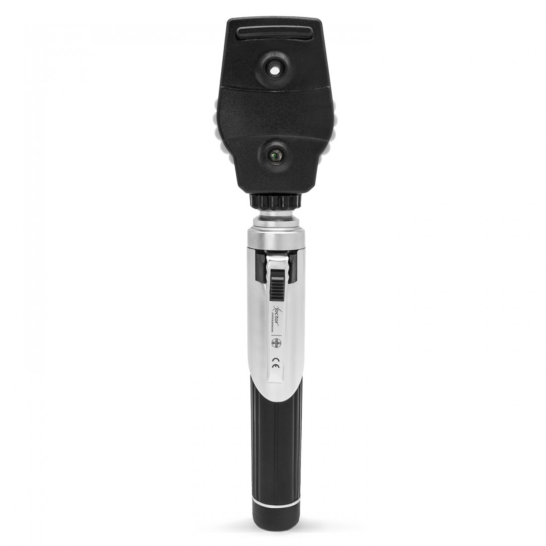 Strumento professionale dotato di illuminazione LED a fibre ottiche composto da un manico ed una testa, sulla quale è posizionata una lente movibile.