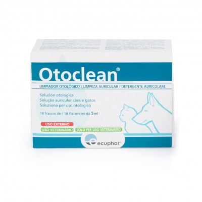 OTOCLEAN Ecuphar 18 × 5 ml è una soluzione detergente auricolare per cani e gatti, formulata per garantire una pulizia profonda e delicata del condotto uditivo.