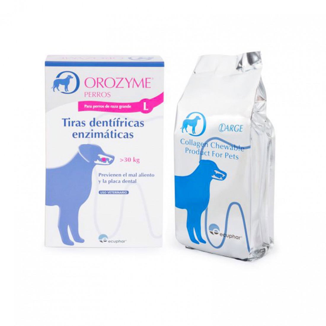OROZYME Ecuphar Strisce Large 141 g è un dispositivo per l’igiene orale dei cani di taglia grande, studiato per ridurre la placca dentale, contrastare la formazione di tartaro e migliorare