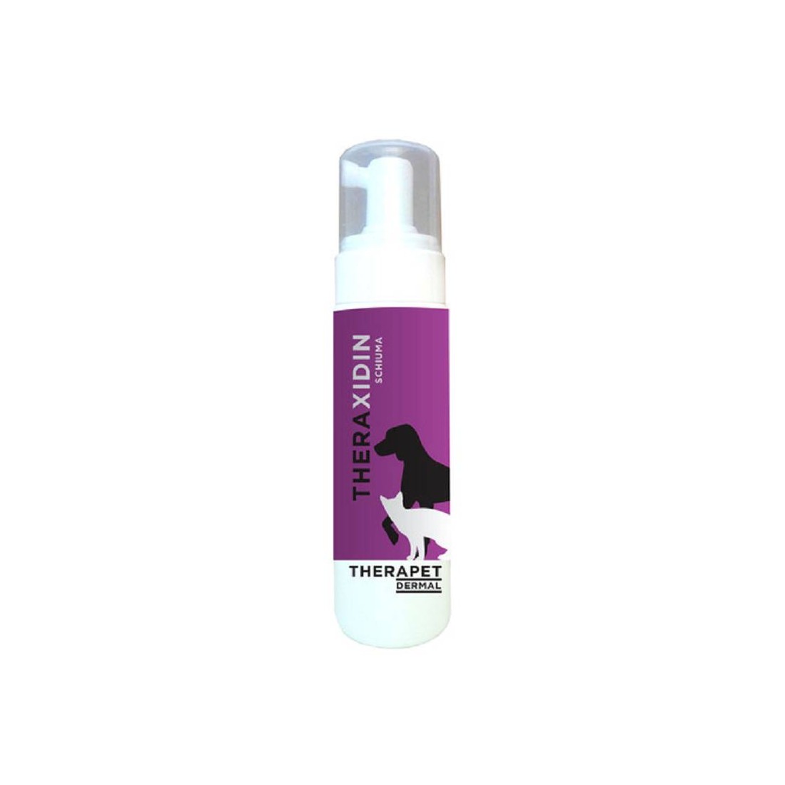 THERAXIDIN schiuma 200 ml è un detergente igienizzante formulato per la cura della cute in animali predisposti a squilibri cutanei o proliferazioni