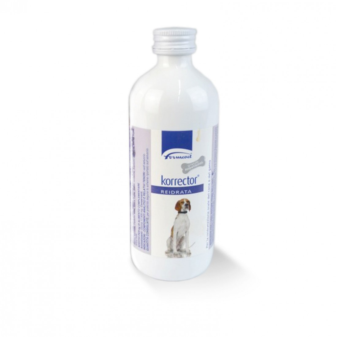 Korrector Reidrata, grazie alla elevata biodisponibilità dei suoi componenti e al gusto particolarmente gradevole, è particolarmente indicato: • per il mantenimento/ripristino dell’equilibrio idrico-salino; • durante e dopo intenso sforzo fisico (lavoro, caccia, attività sportiva); • nei periodi caldi (stress da calore), durante o dopo viaggi, esposizioni alle mostre; • durante l’allattamento o l’innalzamento della temperatura corporea; • nei casi di disidratazione conseguenti a vomito, diarrea sia nel cucciolo/gattino che nell’animale adulto Posologia: Riempire, secondo le dosi consigliate, 1 o più cucchiaini da caffè con Korrector Reidrata e versarli nella ciotola del'acqua del cane o del gatto, mescolandoli con cura. E' possibile la somministrazione direttamente nella bocca o nell'alimento solido. In entrambi i casi assicurarsi che gli animali abbiano a disposizione abbondante acqua. 10-20 ml per ogni litro d'acqua In caso di affezioni croniche e stati di disidratazione accompagnati o conseguenti a vomito e/o diarrea, 10 ml ogni 200-300ml di acqua bere. Formato Flacone da 220 ml