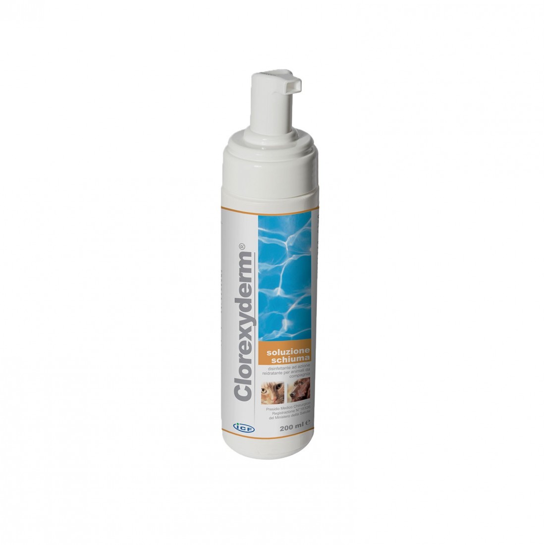 Clorexyderm Soluzione è una schiuma disinfettante per animali da compagnia, ricca di sostanze idratanti ed emollienti che svolge la sua funzione contro i microrganismi sensibili alla clorexidina.
