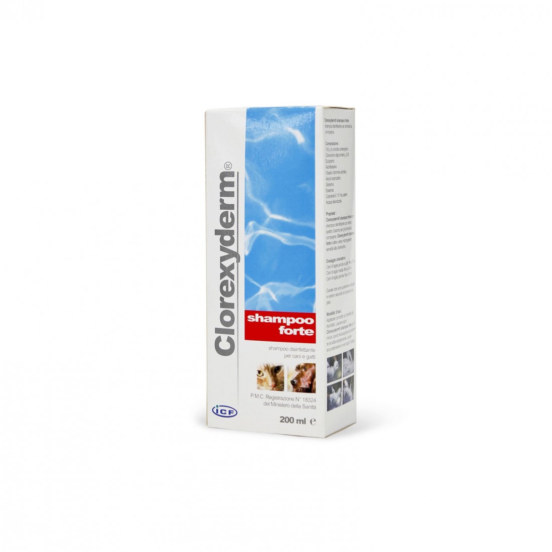 Clorexyderm Shampoo Forte è uno shampoo disinfettante ad ampio spettro attivo verso microrganismi sensibili alla clorexidina e batteri Gram + e Gram -.