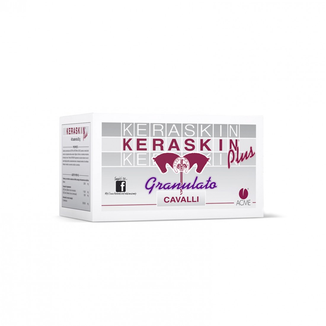 Assicura un apporto doppio di Biotina rispetto al Keraskin e provoca l’accrescimento dello zoccolo a velocità straordinaria. E' efficace nel trattamento dell’ipotrofia dello zoccolo, del difficoltoso accrescimento del tessuto corneo, (presenza di cerchiature) dei difetti di consistenza della muraglia: unghia eccessivamente tenera, friabile, vitrea o scheggiosa. Accelera la riparazione del tessuto corneo in tutti i casi sia necessaria la sua rapida rigenerazione, ad esempio in seguito ad interventi demolitivi (toelettatura delle lesioni da tarlo, riduzione di setole). Migliora il trofismo e la resistenza meccanica del tessuto corneo. Rappresenta la soluzione ideale nei casi di: zoccolo fragile, ipotrofico, eccessivamente tenero o interessato da setole, tarli, cerchiature. Infoltisce il mantello, ne aumenta la vitalità e la lucentezza. Utilizzo: cavalli e puledri, 1-2 buste al giorno / 1-2 buste al giorno Si consiglia la somministrazione quotidiana per 100 giorni consecutivi. Formato: 40 buste da 25g / secchiello da 5 kg.