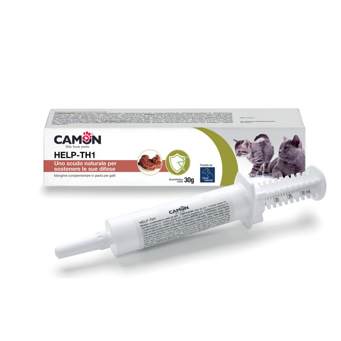 Help-TH1 è un innovativo alimento complementare, in pasta molto appetibile, pensato per sostenere le difese immunitarie di gatti e gattini (fino a 12 mesi). Modalità d'uso: Help-TH1 è disponibile nella pratica siringa graduata da 30g che consente un utilizzo facilitato. Si consiglia di somministrare: 1 g di prodotto (equivalenti a ca. 1 cm di pasta) al dì per gattini e gatti adulti fino a 4kg 2 g di prodotto (equivalenti a ca. 2 cm di pasta) al dì per gatti adulti oltre i 4kg Help-TH1 può essere somministrato direttamente in bocca o nell’alimento dell’animale. Formato: Siringa in pasta da 30 g