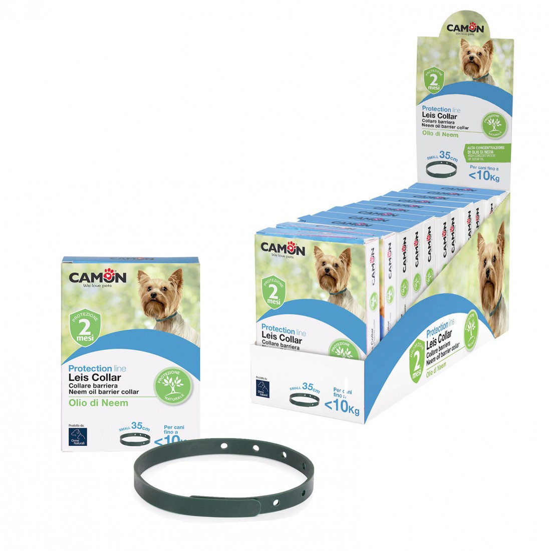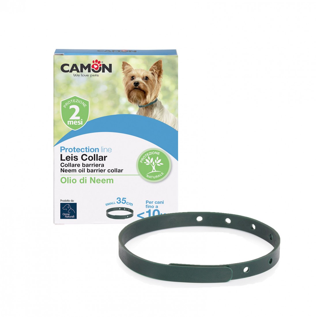 Il collare barriera della linea Orme Naturali, sgradito a parassiti ed insetti, è impregnato di estratto di Margosa (Neem) e può essere usato da solo o anche in sinergia con la lozione o le fiale spot-on. È un prodotto naturale e non ha alcun effetto nocivo né sugli amici animali né sull’ambiente. Le sostanze naturali e attive del collare si sprigionano a contatto col calore del vostro animale. Il collare rilascia un gradevole odore e rende il pelo brillante. Non si altera a contatto con l’acqua e offre protezione per circa 2 mesi. Formato: 60 cm o 75 cm.