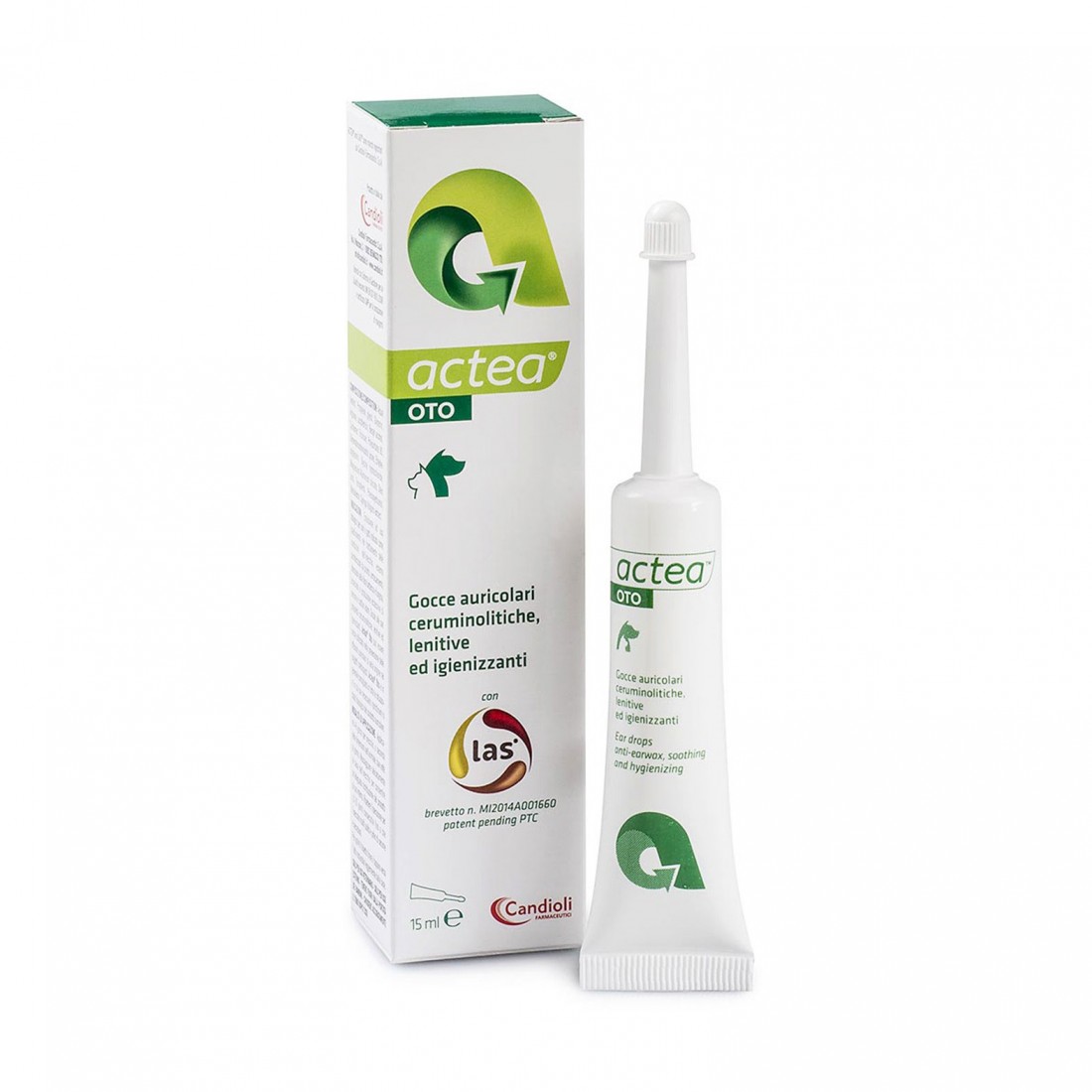 Emulsione ad uso otologico per cani e gatti indicata come coadiuvante nel trattamento delle condizioni dell’orecchio esterno caratterizzate da prurito, arrossamento, alterazioni della flora batterica e fungina, associate a produzione eccessiva di cerume e cattivo odore. Grazie alle sue proprietà ceruminolitiche, lenitive ed igienizzanti, Actea® Oto può essere anche utilizzato nella prevenzione delle affezioni auricolari di varia origine nei soggetti predisposti. Actea® Oto è in generale consigliato in tutte le situazioni in cui è necessario ripristinare lo stato fisiologico del condotto auricolare. Modalità di somministrazione Applicare 4-8 gocce per orecchio, a seconda delle dimensioni dell’animale, due volte al giorno. Massaggiare delicatamente la base dell’orecchio per consentire un’adeguata distribuzione del prodotto al suo interno. Ripetere l’operazione per 10-20 giorni consecutivi fino a che l’orecchio risulti pulito e privo di cerume e secrezioni. Formato: Tubetto con cannula applicatrice da 15 ml Composizione Aqua (water), Glycerin, Arginine, Lactoferricin, Benzyl alcohol, Carbomer, Polysorbate 80, Glycerophosphoinositol Lysine, Ethylhexylglycerin, Glycine hydrochloride, Magnesium Aluminum silicate, Oleic acid, Tocopherol, Phenoxyethanol, Maltodextrin, Syringa Vulgaris extract.