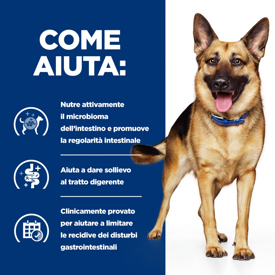 Hill's Prescription Diet Gastrointestinal Biome alimento secco per cani con ActivBiome+, un' innovativa tecnologia di ingredienti Hill's, ha dimostrato clinicamente di risolvere la diarrea canina in 24 ore e ridurre il rischio di recidiva. È appositamente formulato da nutrizionisti e veterinari per la cura dell'apparato digerente per promuovere feci sane, nutrire il microbioma intestinale e ridurre il rischio di recidiva.