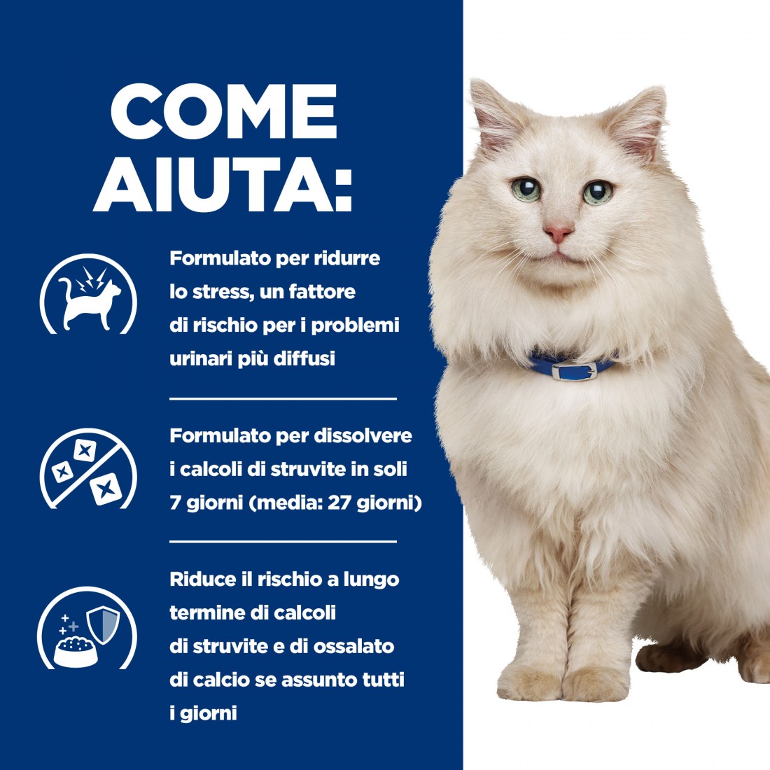 Riduce il rischio a lungo termine di calcoli di struvite e ossalato di calcio quando viene somministrato quotidianamente