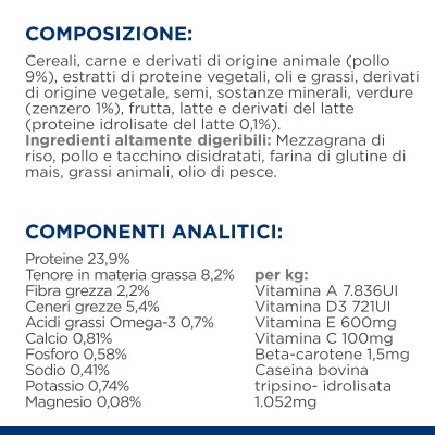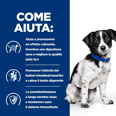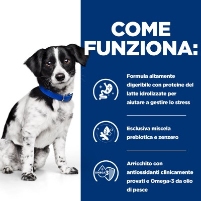 Hill's Prescription Diet i/d Stress alimento secco per cani fornisce tutta la nutrizione di cui il tuo cane ha bisogno durante gli episodi di disturbi digestivi legati allo stress e può essere usato a lungo termine. Se è previsto un evento stressante, si consiglia di iniziare l'assunzione in anticipo. Consulta il tuo veterinario per ulteriori informazioni su come i nostri alimenti Prescription Diet possono aiutare il tuo cane a continuare a godere di una vita felice e attiva.