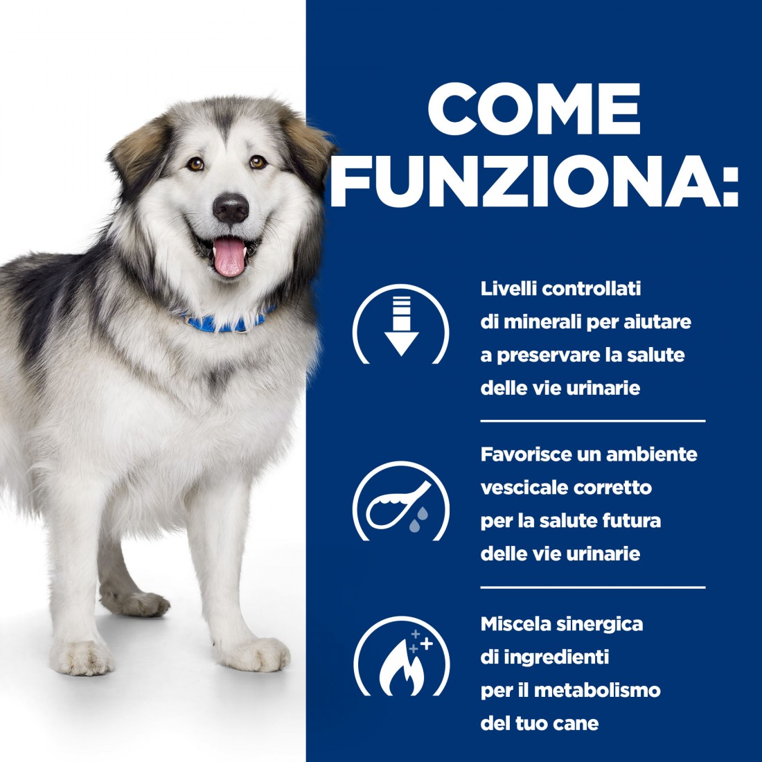 Prescription Diet c/d Multicare + Metabolic alimento secco per cani è stato appositamente formulato da nutrizionisti e veterinari per aiutare a gestire la salute urinaria e il peso del paziente. Infatti, c/d Multicare + Metabolic aiuta a gestire il rischio di calcoli di ossalato e struvite nei cani in combinazione con un'alimentazione che ha dimostrato di ridurre il peso.