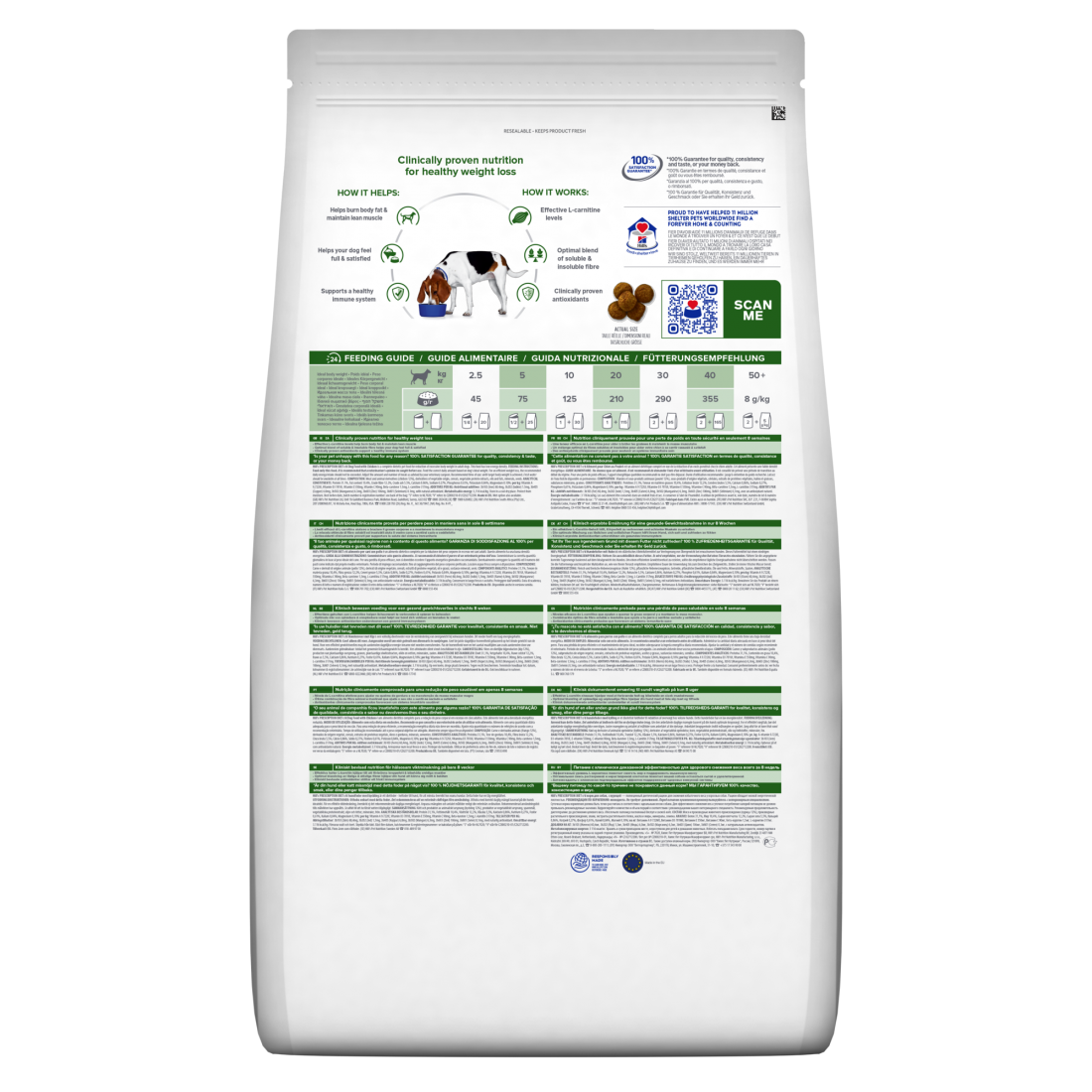 I nutrizionisti e i veterinari di Hill's hanno sviluppato la nutrizione clinica Prescription Diet r/d appositamente formulata per supportare la perdita di peso dei cani. Infatti, r/d è un alimento clinicamente testato per una sana perdita di peso in sole 8 settimane. Questo alimento secco è fatto con pollo e ha un gusto irresistibile che il tuo cane adorerà.