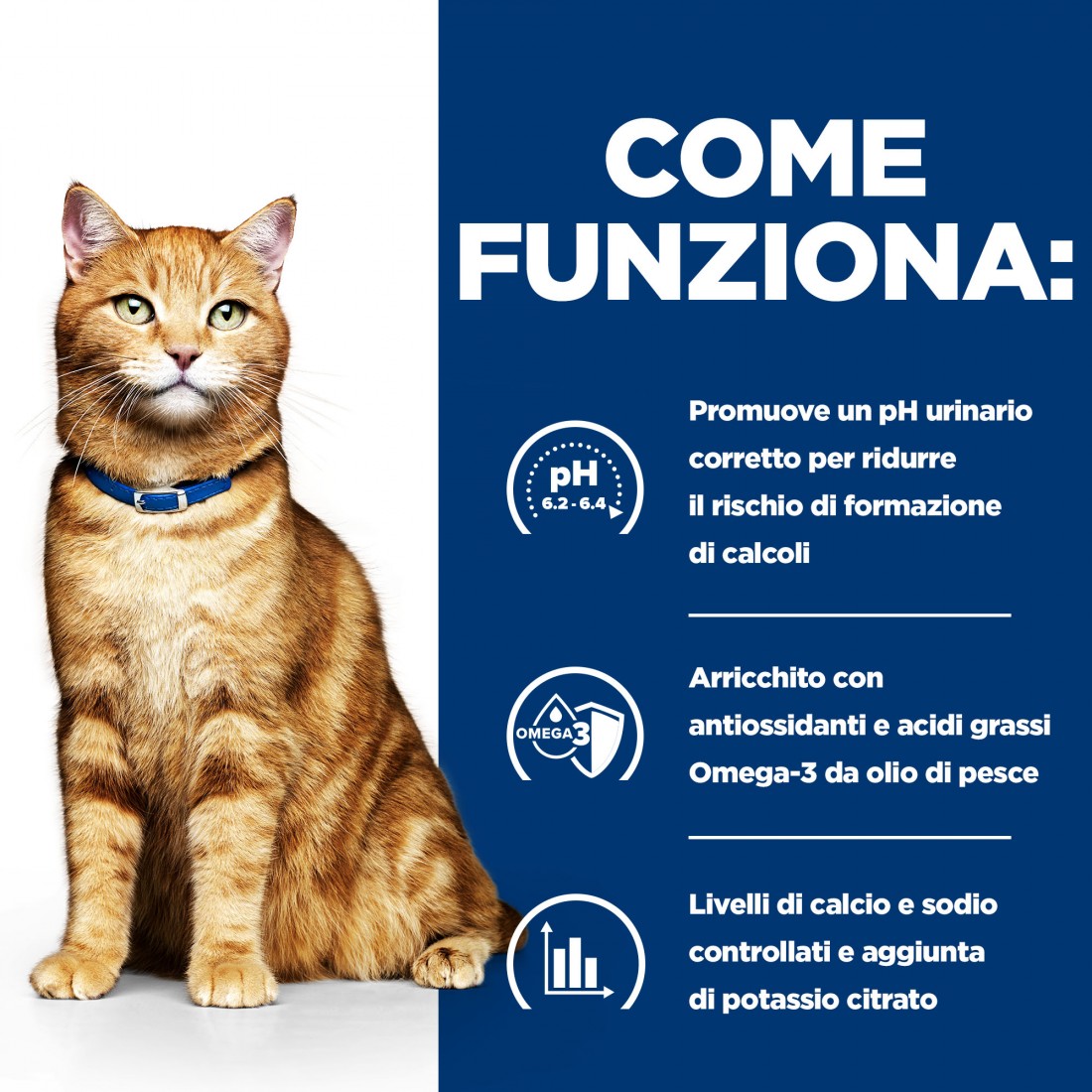 Riduce il rischio di calcoli di struvite e ossalato di calcio