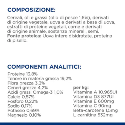 Fosforo controllato e basso contenuto di sodio, arricchito con omega-3 dall'olio di pesce