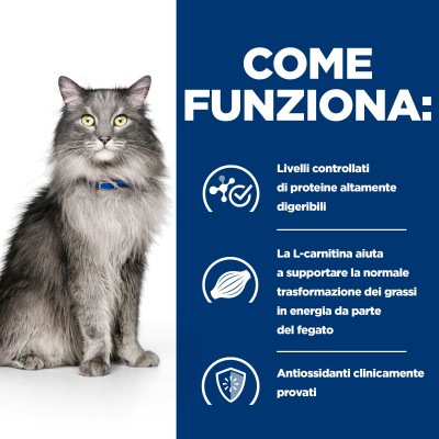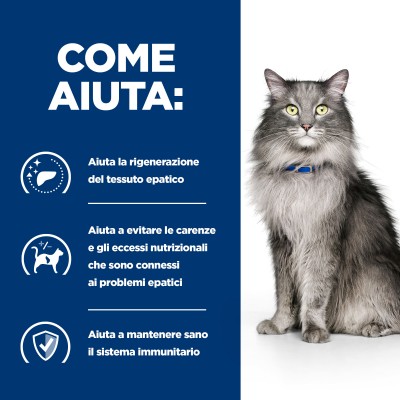 Il fegato del tuo gatto svolge molte funzioni, tra cui il metabolismo dei nutrienti, la rimozione delle sostanze tossiche dal sangue e l'immagazzinamento di vitamine e minerali. Il fegato ha una straordinaria capacità di ripararsi e rigenerarsi e la nutrizione gioca un ruolo fondamentale in questo processo. I nutrizionisti e veterinari Hill's hanno sviluppato Prescription Diet l/d, un nutrimento clinico formulato appositamente per supportare la salute del fegato del tuo gatto. Infatti, l/d è formulato per aiutare a proteggere la funzione vitale del fegato.