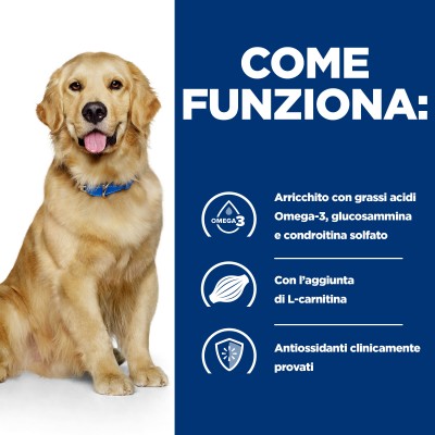 Hill's Prescription Diet j/d aiuta il tuo cane a camminare, correre e saltare più facilmente in soli 21 giorni. Hill's Prescription Diet j/d alimento secco per cani è un alimento completo e bilanciato che fornisce tutta la nutrizione di cui il tuo cane ha bisogno.