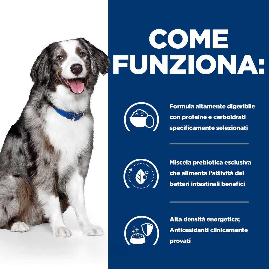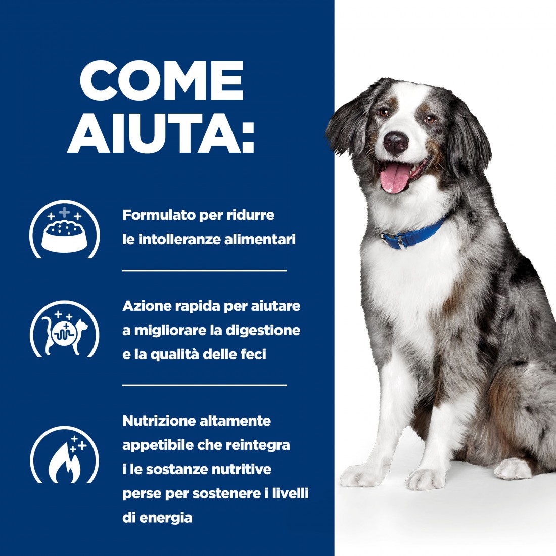 Gli alimenti dietetici Hill's Prescription Diet i/d Sensitive forniscono tutta la nutrizione di cui il tuo cane ha bisogno e possono essere utilizzati a lungo termine. Consulta il tuo veterinario per ulteriori informazioni su come i nostri alimenti Prescription Diet possono aiutare il tuo cane a continuare a vivere una vita felice e attiva. Le formule secche e in scatola possono essere miscelate o somministrate contemporaneamente.