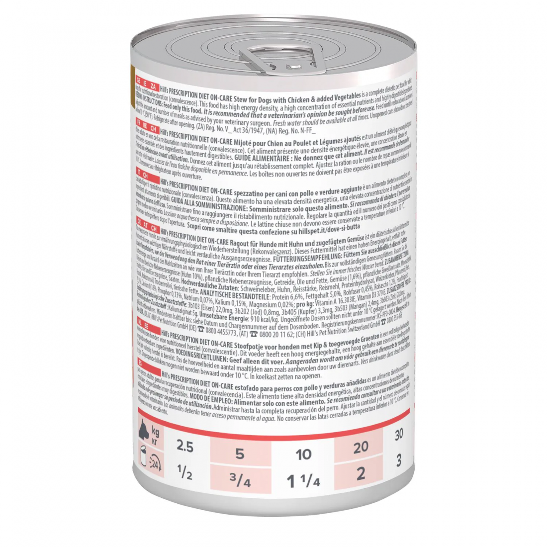 I nutrizionisti e i veterinari di Hill's hanno sviluppato la nutrizione di Hill's Prescription Diet ON-Care per aiutare specificamente a nutrire e sostenere i cani che combattono malattie gravi. Questo delizioso alimento umido è realizzato con pollo, grassi saporiti e proteine altamente digeribili, per offrire al tuo cane un'ottima esperienza durante il pasto.