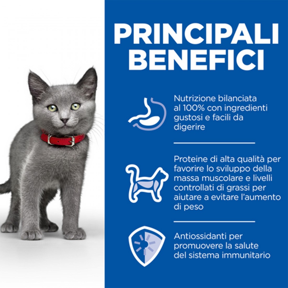 Hill's Science Plan Sterilized Kitten offre una nutrizione deliziosa, completa e bilanciata per lo sviluppo ottimale e il supporto immunitario dei gattini sterilizzati, cosicchè possano cominciare al meglio la loro vita e raggiungere il loro pieno potenziale