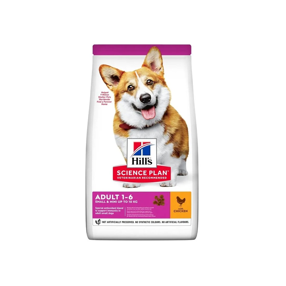 Alimento secco completo per cani adulti di piccola taglia. Hill’s Science Plan Small & Mini Adult al pollo supporta energia, digestione e vitalità quotidiana. Formato 6 kg.