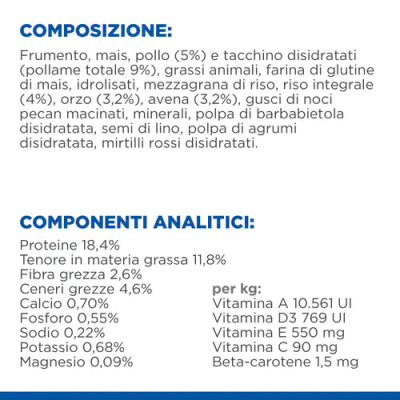 Cuccioli, cani adulti oltre i 7 anni, femmine in gravidanza o allattamento. Durante la gravidanza o l'allattamento i cani dovrebbero passare all'alimento Hill’s Science Plan Puppy.