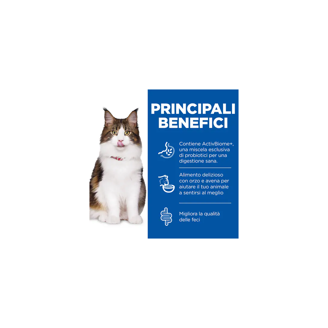 Hill's Science Plan PERFECT DIGESTION Adult Alimento per Gatti con Pollo contiene ActivBiome+, un'esclusiva miscela Hill's di prebiotici che aiuta a nutrire ed equilibrare rapidamente il microbioma unico del tuo animale.