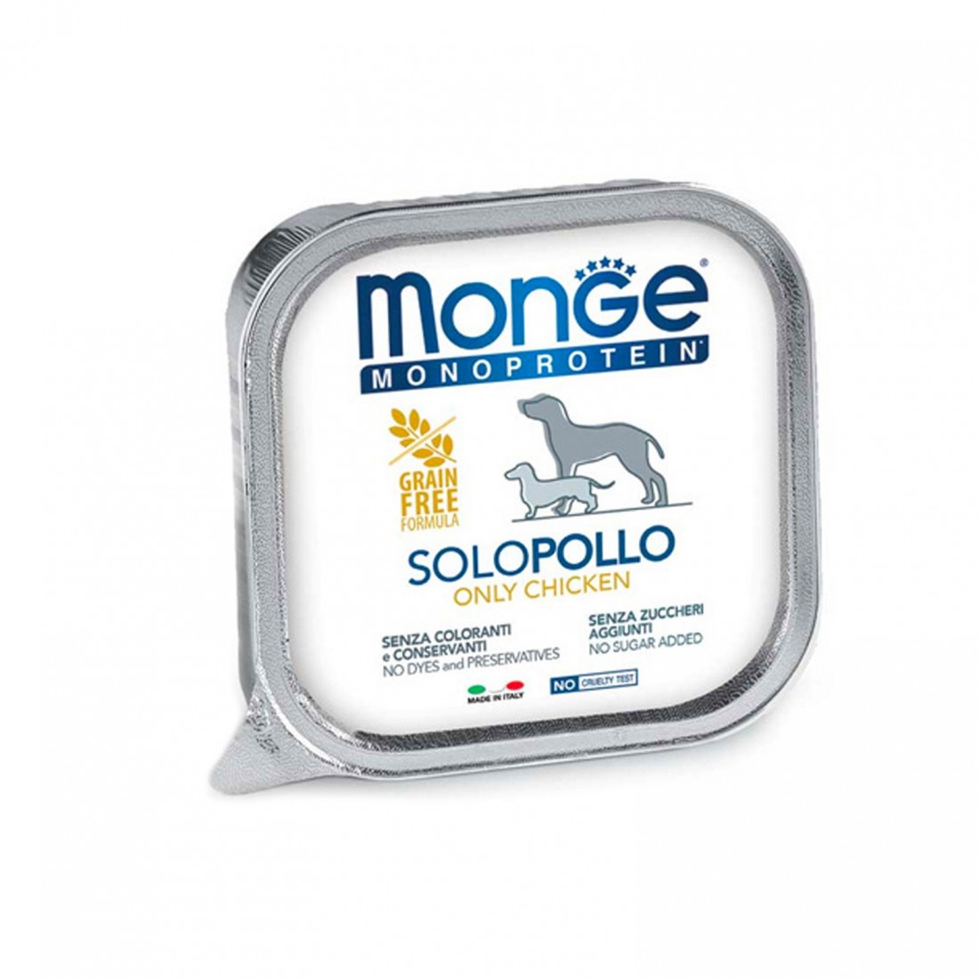 Paté formulato con un’unica fonte proteica, il pollo selezionato di altissima qualità.