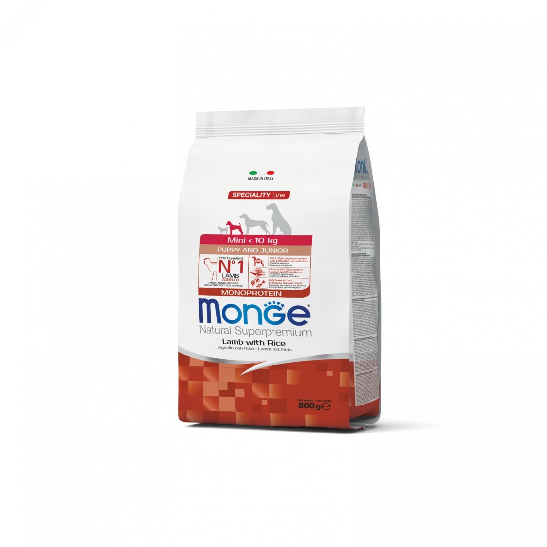 Monge Natural Superpremium Mini Puppy and Junior Monoprotein* Agnello con Riso è un alimento completo per cani cuccioli di taglia mini.