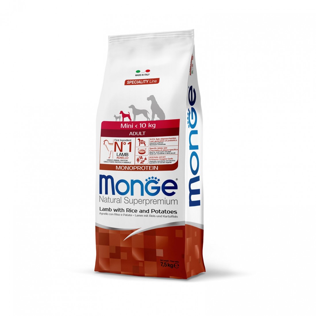 Monge Natural Superpremium Mini Adult Monoprotein* Agnello con riso e patate è un alimento completo per cani adulti di taglia mini.