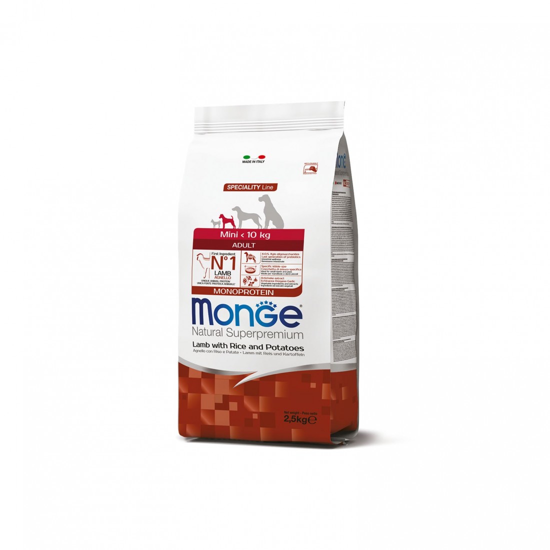 Monge Natural Superpremium Mini Adult Monoprotein* Agnello con riso e patate è un alimento completo per cani adulti di taglia mini.