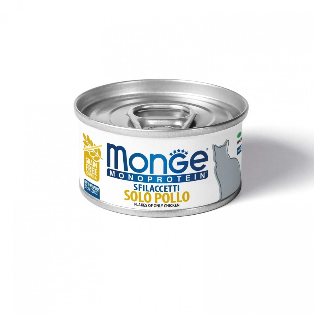 Gli sfilaccetti sono cotti al vapore e hanno una texture soffice e un aroma piacevole. Questo alimento completo e bilanciato è formulato con una singola fonte proteica animale, il pollo, e senza cereali.