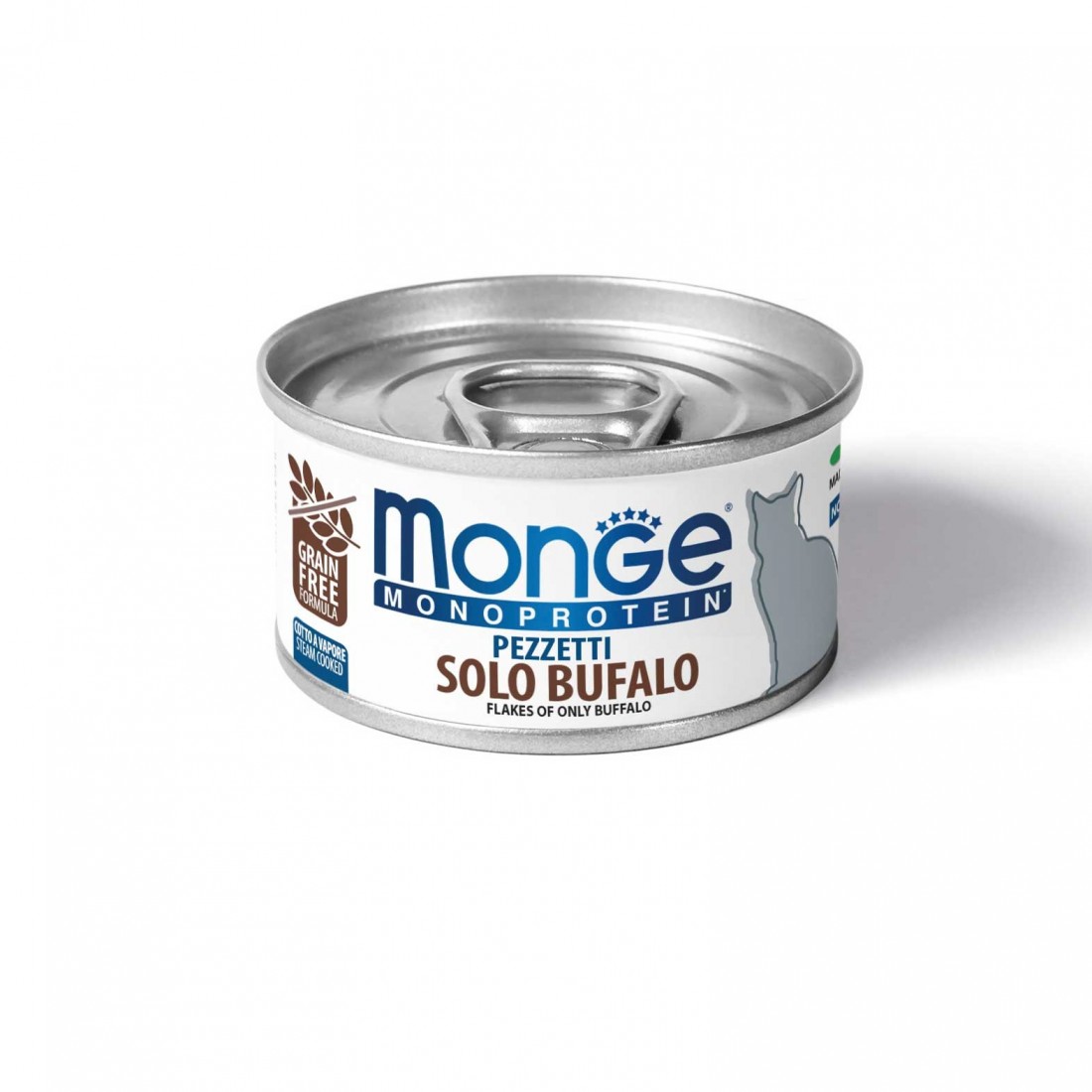 I pezzetti sono cotti al vapore e hanno una texture soffice e un aroma piacevole. Questo alimento completo e bilanciato è formulato con una singola fonte proteica animale, il bufalo, e senza cereali.