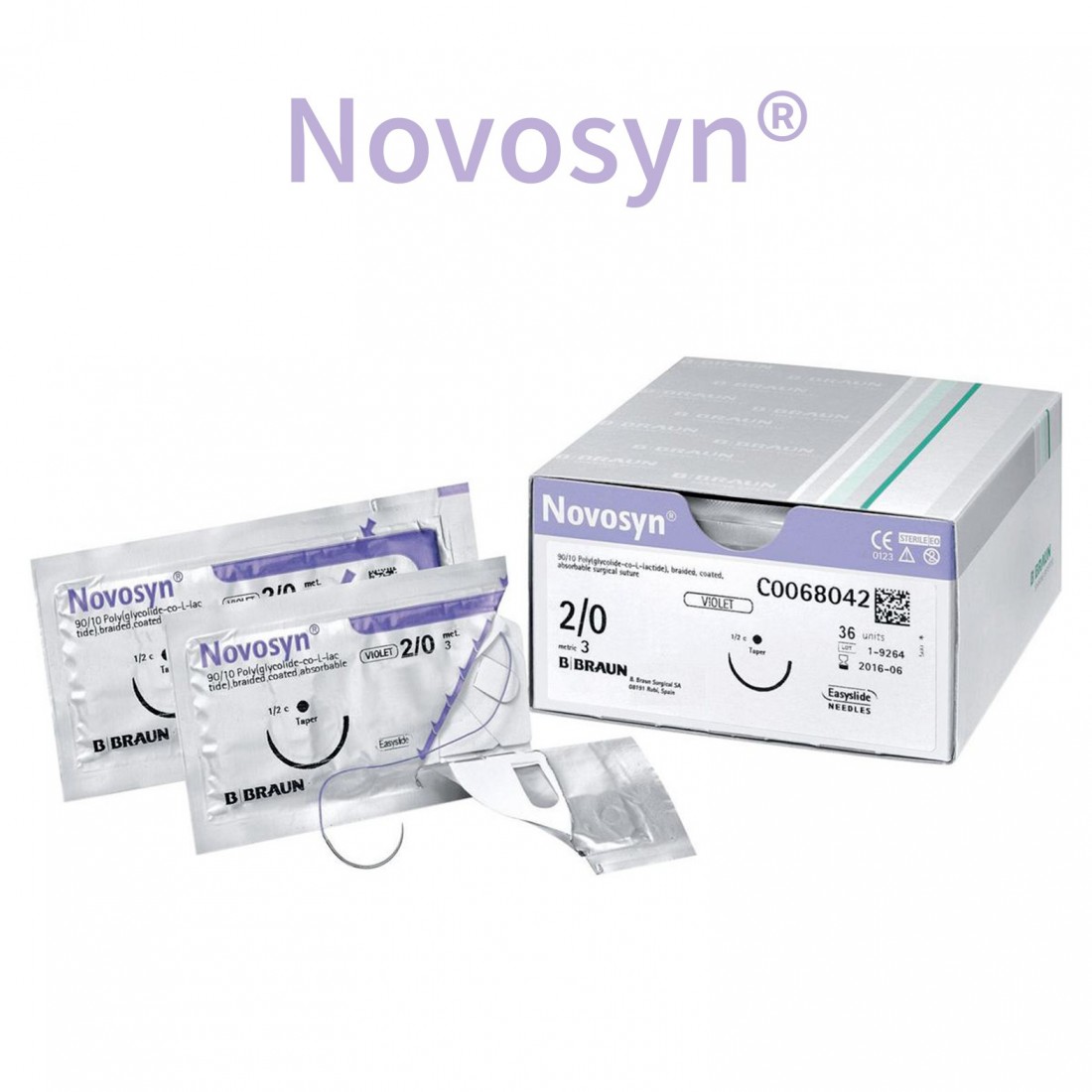 Indicazioni prodotto: Novosyn ® è una sutura sintetica assorbibile a medio termine intrecciata e rivestito, costituita da poliglactina 910. Novosyn ® si degrada per idrolisi e fornisce un assorbimento prevedibile e affidabile. Vantaggi Scorrevolezza regolare del nodo Delicato riposizionamento del nodo Elevata capacità del nodo Reazione infiammatoria ridotta al minimo Caratteristiche 40-50% di conservazione della resistenza alla trazione: 21 giorni Completo assorbimento di massa : da 56 a 70 giorni Nota Misure disponibili USP 8/0 ( 0.4 unità metriche)fino a USP 2 (5 unità metriche) Indicazione Chirurgia gastrointestinale Ginecologia / Ostetricia Ortopedia Chirurgia oftalmica Urologia Chiusura della pelle (enterocutanea, sottocutanea) Legature Formati disponibili: NOVOSYN VIOLA 2/0 - 140CM S/AGO NOVOSYN VIOLA 0 - 140CM S/AGO NOVOSYN VIOLA 1 - 140CM S/AGO NOVOSYN VIOLA 0 - 70CM AGO TRIANG