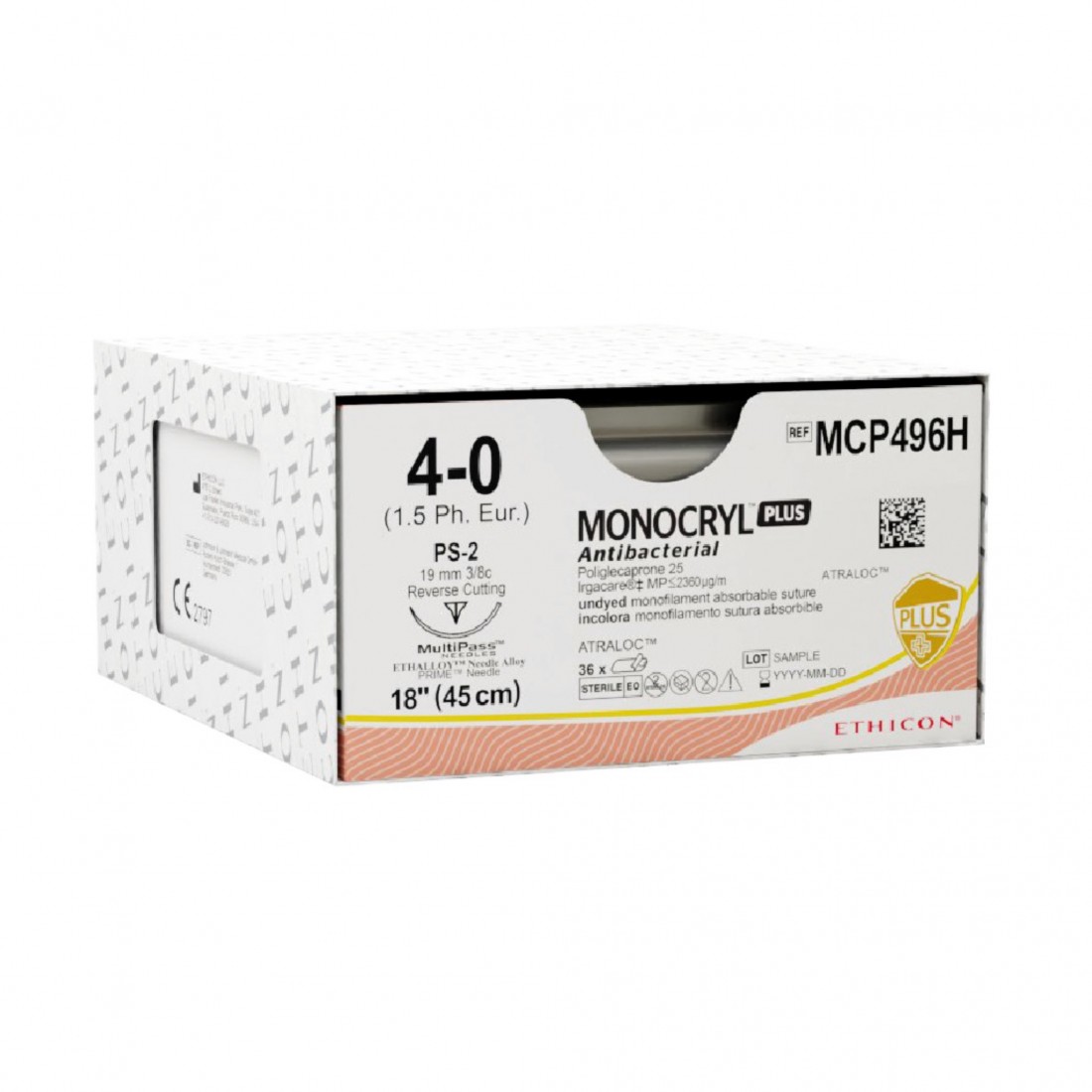 La sutura antibatterica MONOCRYL™ Plus è un monofilamento sterile, sintetico, assorbibile, composto da un copolimero di glicolide e ε-caprolattone con un contenuto in peso ≥ 99,95%.