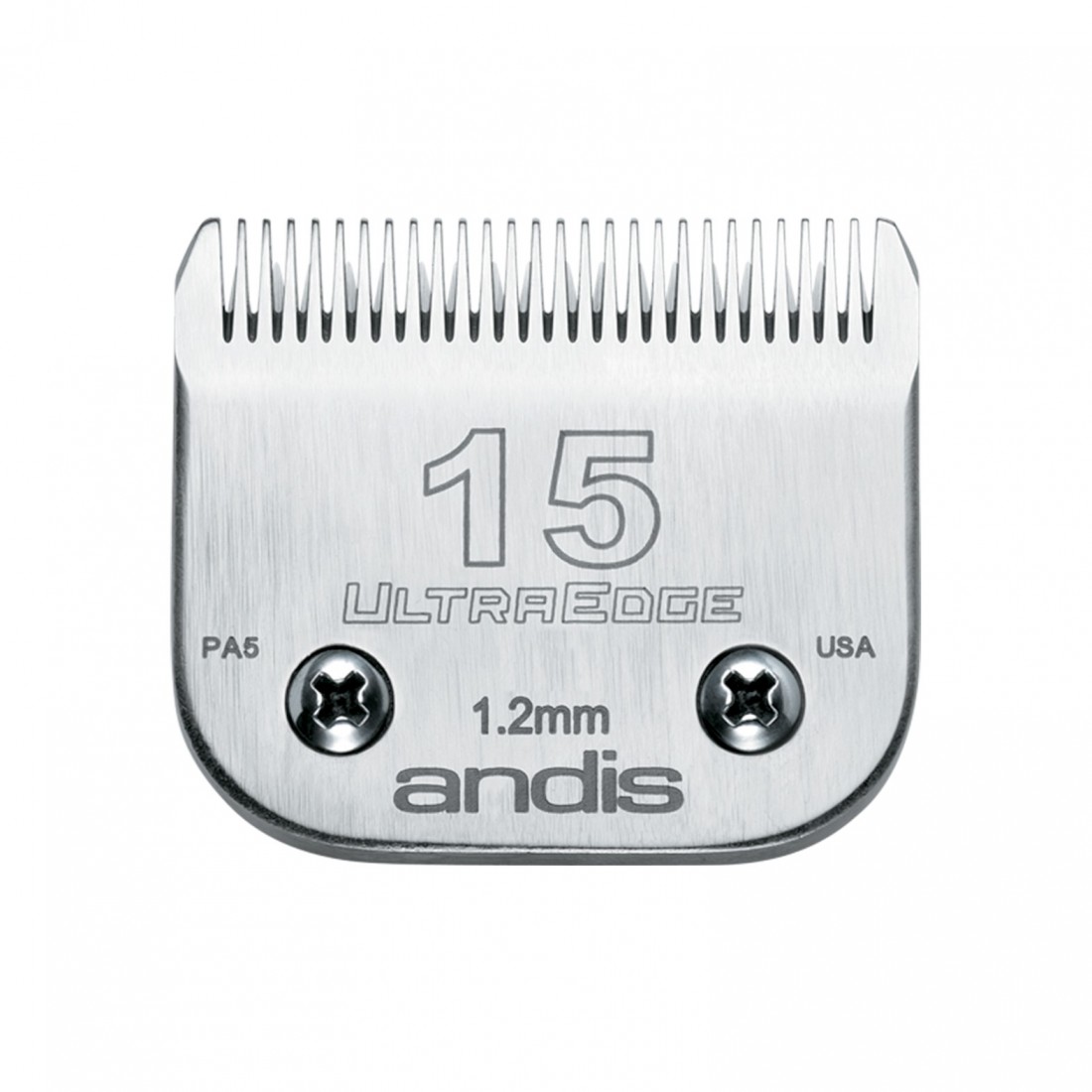 TESTINA ANDIS Lama compatibile con tosatrice Ultraedge Andis e tosatrice Oster Realizzata in acciaio al carbonio di alta qualità secondo standard elevati Grazie alla speciale finitura cromata che inibisce la corrosione ed un esclusivo processo di tempra le lame rimangono più affilate più a lungo SIZE: 15 (1,2 mm)