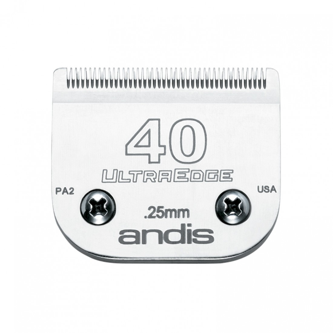 TESTINA ANDIS Lama compatibile con tosatrice Ultraedge Andis e tosatrice Oster Realizzata in acciaio al carbonio di alta qualità secondo standard elevati Grazie alla speciale finitura cromata che inibisce la corrosione ed un esclusivo processo di tempra le lame rimangono più affilate più a lungo SIZE: 40 (0,25 mm)